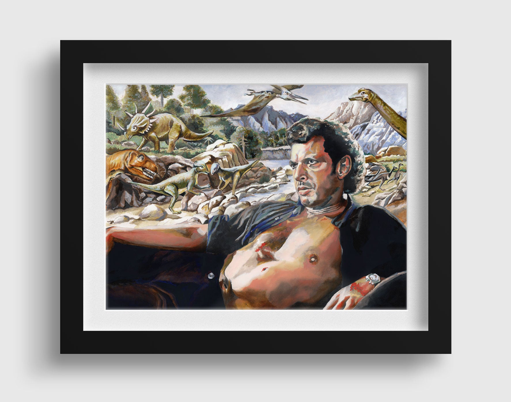 This painted portrait of Jeff Goldblum depicting Ian Malcolm is a reproduction of one of my oil paintings.
