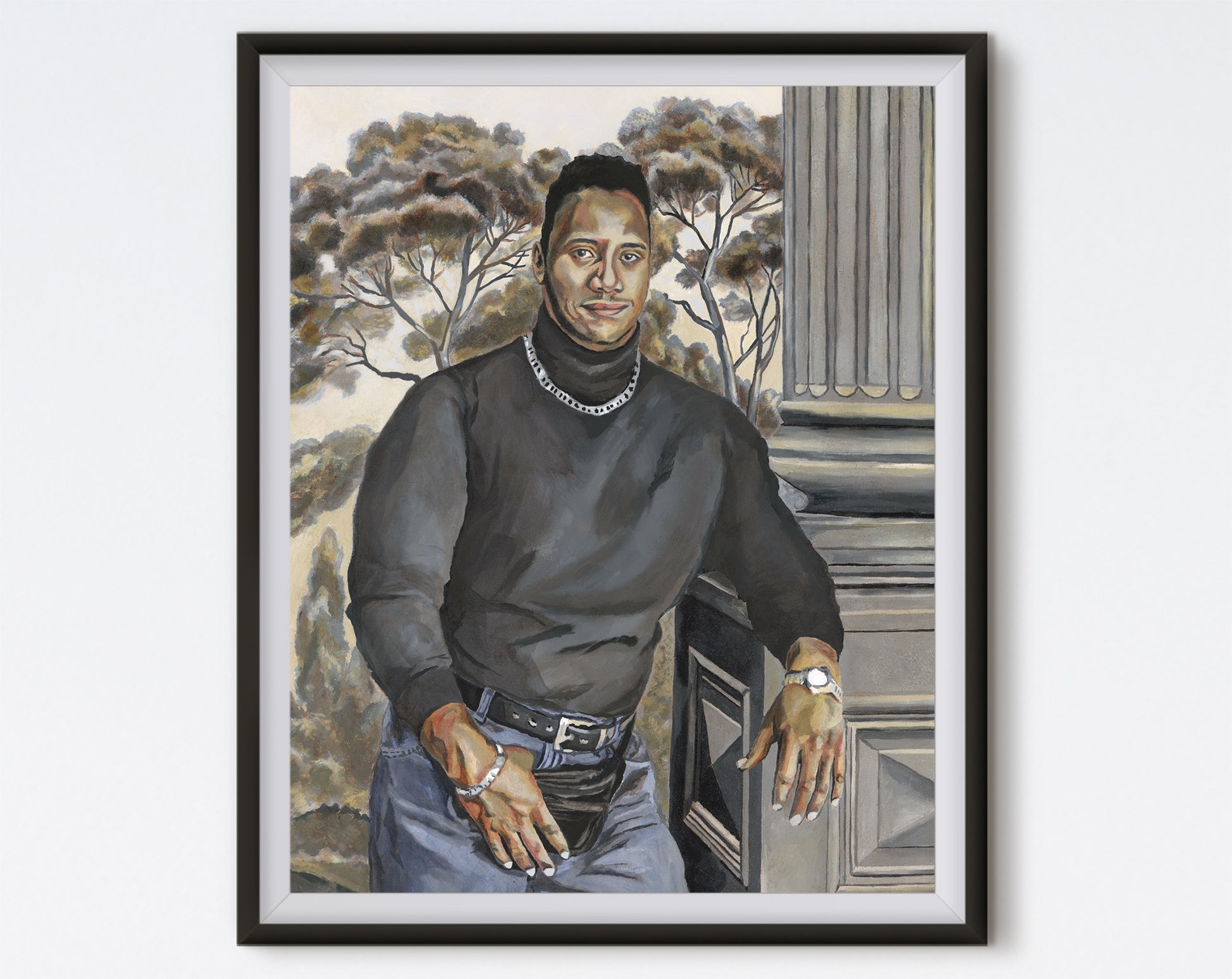 This painted portrait of Dwayne Johnson is a reproduction of one of my oil paintings.