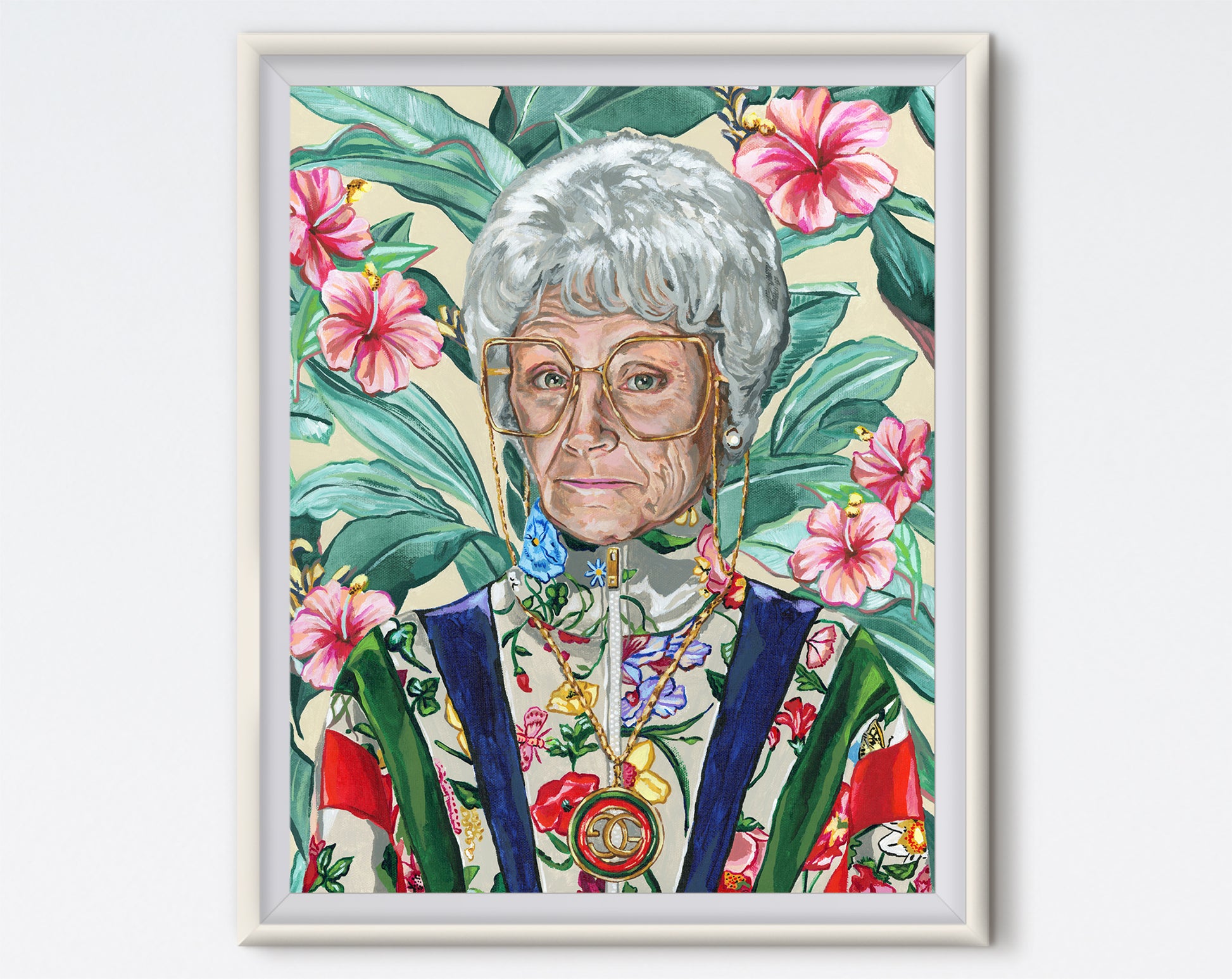 This painted portrait of Sophia Petrillo is a reproduction of one of my acrylic paintings.