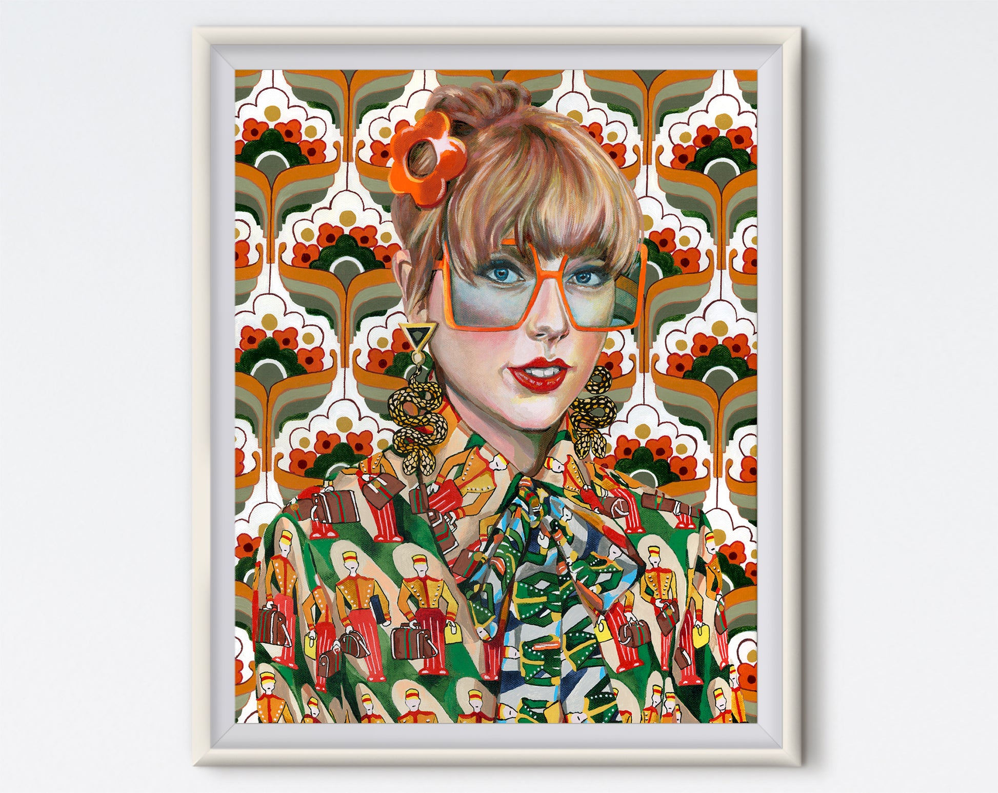 This painted portrait of Taylor Swift is a reproduction of one of my acrylic paintings.