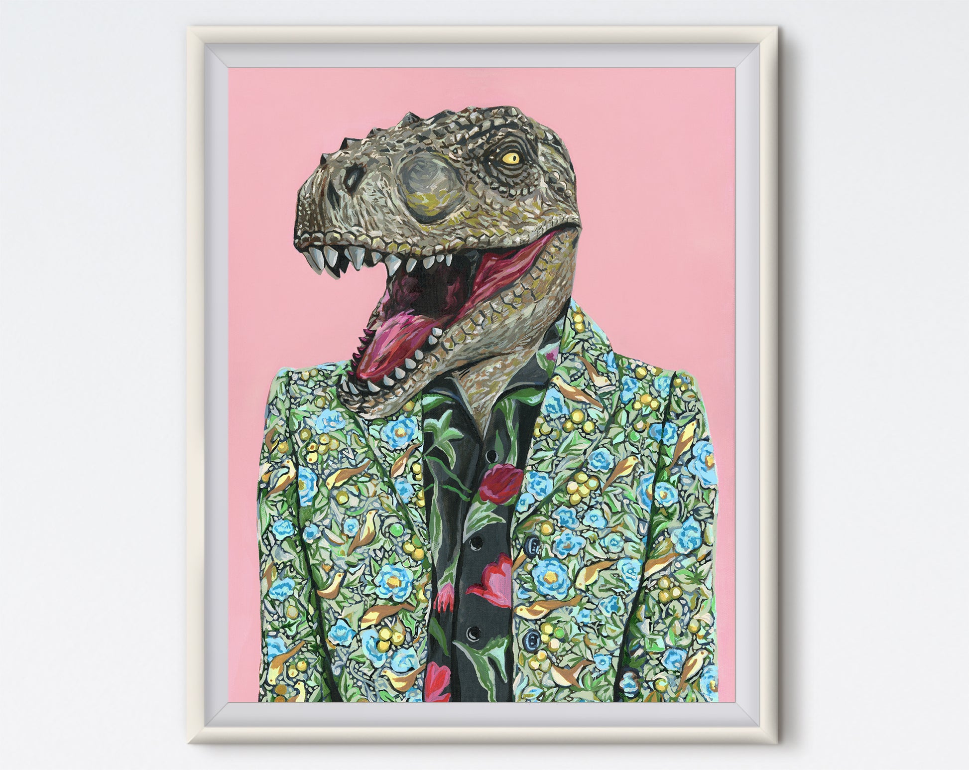 This portrait of a Tyrannosaurus Rex wearing Gucci is a reproduction of one of my acrylic paintings.