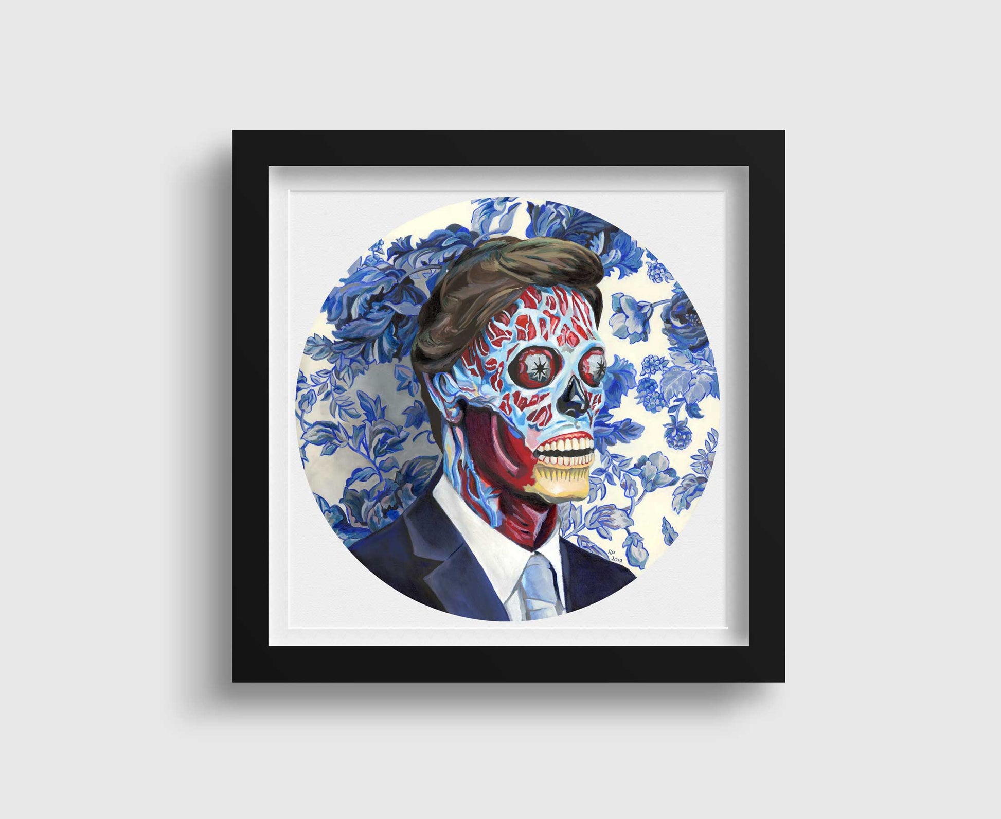This painted portrait of an alien from They Live is a reproduction of one of my oil paintings.
